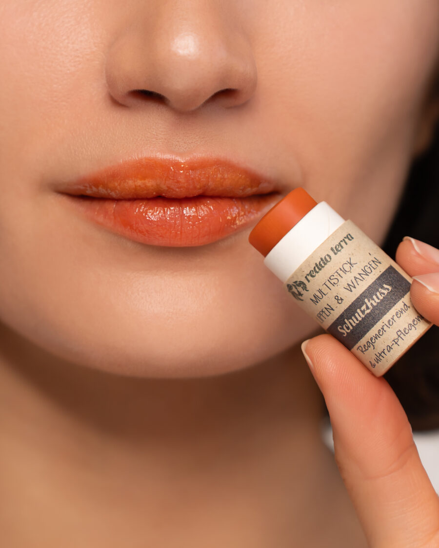 Der Balm eignet sich besonders für Lippen, die beansprucht wirken, oft Pflege brauchen oder sensibel reagieren. Gleichzeitig verleiht der warme Orange-Schimmer durch Astaxanthin einen gepflegten, leicht glänzenden Look, der die Lippen optisch voller wirken lassen kann – solo oder als Topcoat über deinen farbigen Multisticks.