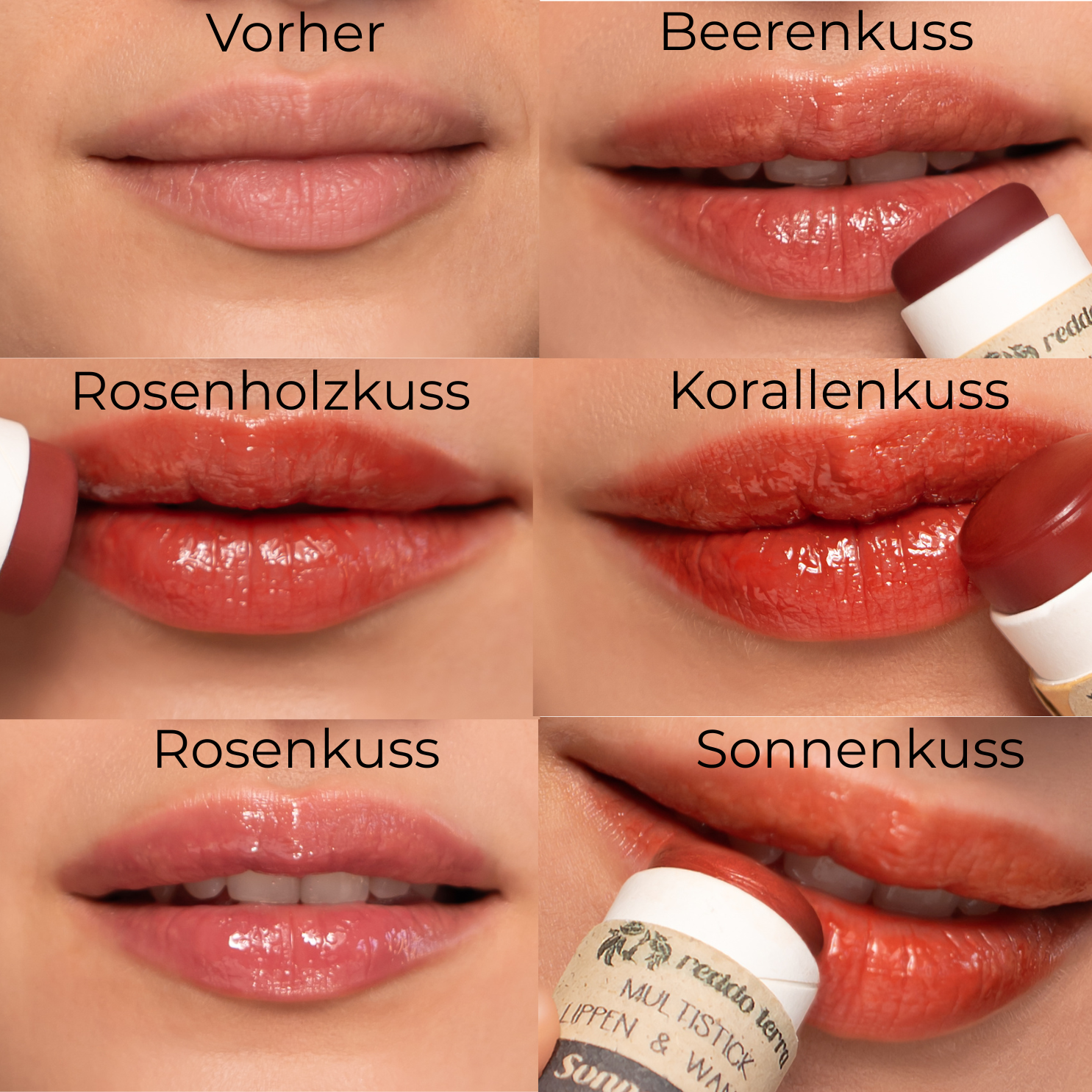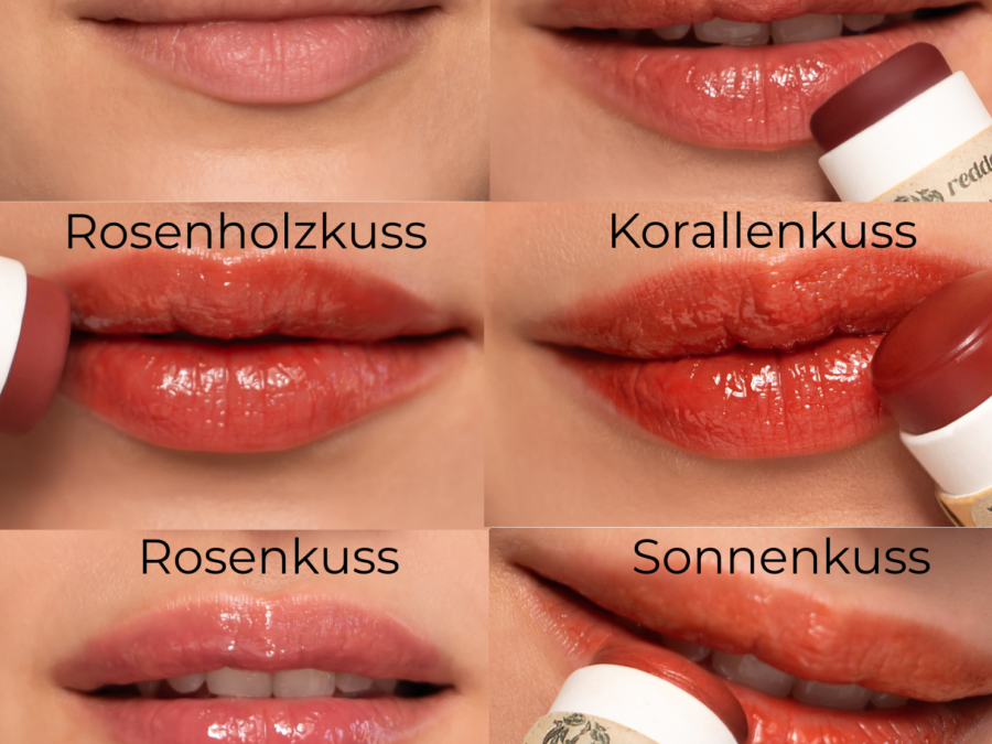 Klassische Lippenfarben enthalten oft Karmin (aus Schildläusen) oder tierische Wachse. Wir arbeiten stattdessen mit pflanzlichen Ölen, veganen Wachsen und mineralischen Pigmenten. Das sorgt für sanftere, natürlich wirkende Resultate – ganz ohne tierische Inhaltsstoffe.